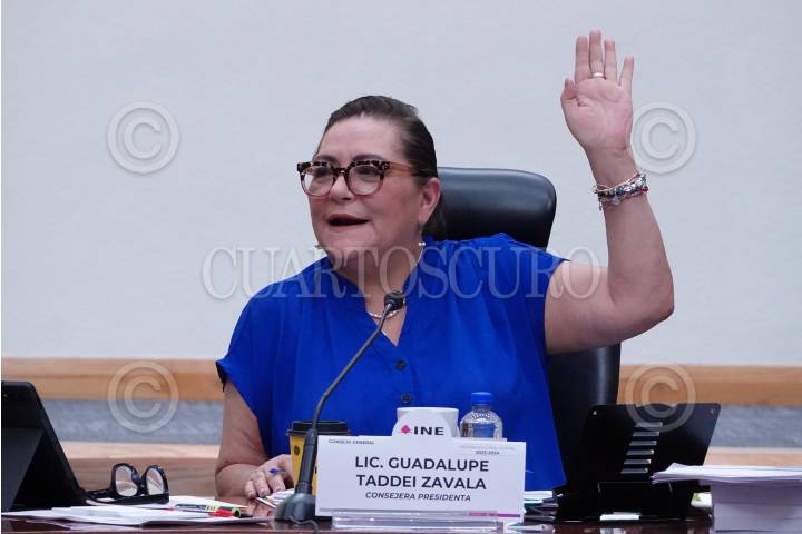 CIUDAD DE MÉXICO, 04MARZO2025.- La presidenta Guadalupe Taddei vota durante la Sesión Extraordinaria del Consejo General del Instituto Nacional Electoral (INE) en la que se discutieron El informe sobre la acreditación de personas interesadas en ser observadores electorales en Durango y Veracruz, así como las irregularidades en ingresos de gastos de campaña en las elecciones al cargo de Ayuntamiento de Venustiano Carranza, Chignahuapan, Xiutetelco y Ayotoxco de Guerrero. FOTO: GALO CAÑAS/CUARTOSCURO.COM