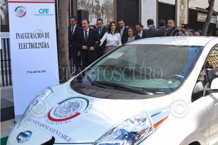 CIUDAD DE MÉXICO, 27ABRIL2016.- Con la presencia del Enrique Ochoa Reza, director de la Comisión Federal Eléctrica, Roberto Gil Zuarth, presidente del Senado, y Emilio Gamboa Oatron, coordinador de los senadores tricolores, inauguraron la electrolinera, ubicada en la calle de Madrid a un costado del Senado. FOTO: MOISÉS PABLO /CUARTOSCURO.