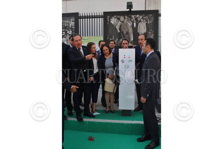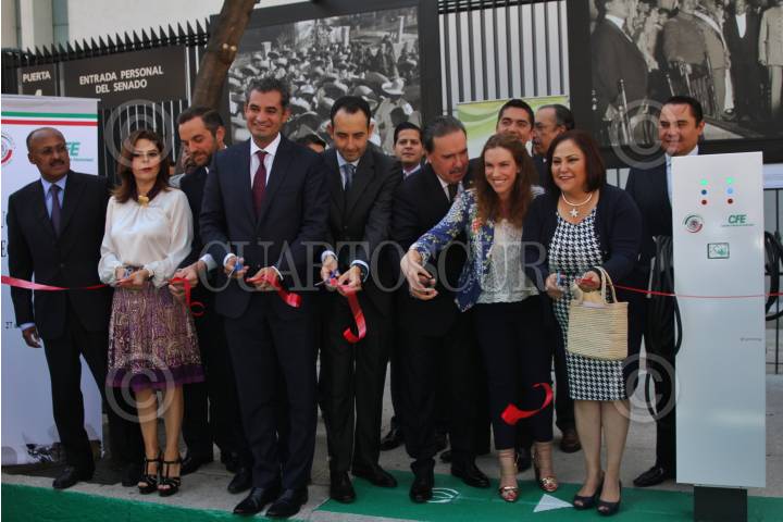 CIUDAD DE MÉXICO, 26ABRIL2016.- Enrique Ochoa Reza, director de la Comisión Federal de Electricidad, y los senadores Emilio Gamboa, Ninfa Salinas Sada, y Silvia Guadalupe Garza Galván, inauguraron la electrolinera, ubicada en la calle de Madrid a un costado del Senado. FOTO: MOISÉS PABLO /CUARTOSCURO.COM
