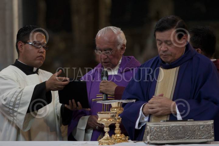 MÉXICO, D.F; 13MARZO2011.- El Cardenal, Norberto Rivera Carrera, encabezo la misa dominical en la Catedral Metropolitana, donde utilizaron las tabletas electrónicas durante la misa. FOTO: GUILLERMO PEREA/CUARTOSCURO.COM