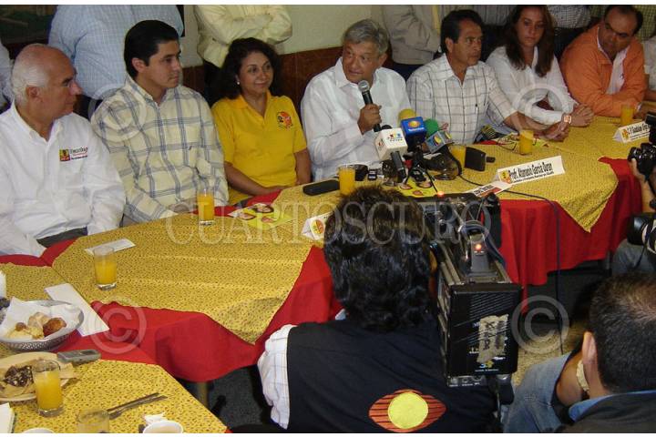 XALAPA, VERACRUZ 20JULIO2007.- Andrés Manuel López Obrador, Presidente Legítimo elegido por la Convención Democrática del año pasado, visitó la capital del estado y dió el espaldarazo al candidato por la alcaldía de xalapa, y a las candidatas a diputadas locales. FOTO: JORGE VALDÉS/CUARTOSCURO.COM