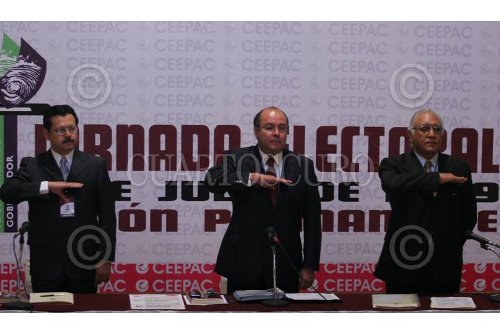 SAN LUIS POTOSI, SAN LUIS POTOSI, 05JULIO2009.- Rodolfo Jorge Aguilar, Presidente consejero electoral de esta entidad, dio inicio a la jornada electoral en donde se elegirá al nuevo gobernador de este estado. FOTO:RICARDO CASTELAN/CUARTOSCURO.COM