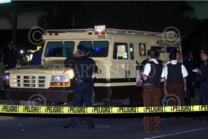 MÉXICO, D.F., 06OCTUBRE2010.- Alejandro Cienfuegos Ambríz de 25 años, quien se desempeñaba como custodio de la empresa COMETRA, perdió la vida al recibir un impacto de arma de fuego en la balacera que se generó en el robo y asalto a una camioneta de traslado de valores que recogía el dinero de la taquilla de la estación del metro División del Norte en la avenida del mismo nombre esquina con universidad. FOTO: LUZ ACEVEDO/CUARTOSCURO.COM