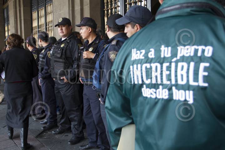 MÉXICO D.F., 14AGOSTO2014.- Elemento de la Secretaria de Seguridad Publica del D.F. resguardan la entra a las instalaciones de la oficinas de gobierno del Distrito Federal. FOTO: GUILLERMO PEREA /CUARTOSCURO.COM