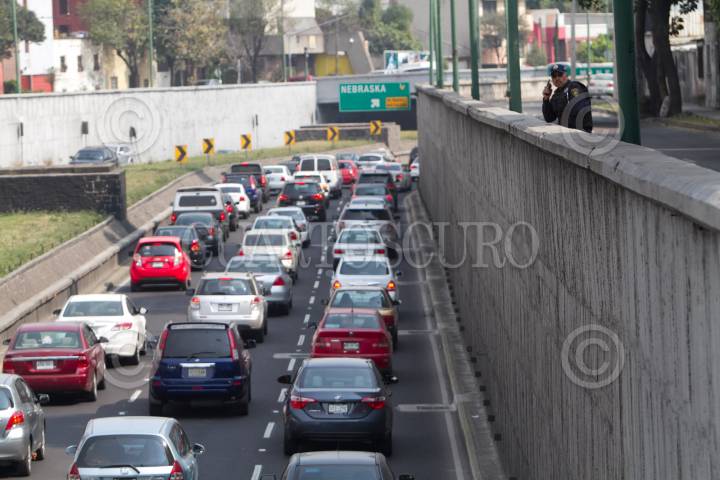 MÉXICO, D.F., 20ENERO2015.- Un elemento de la Secretaria de seguridad publica del Distrito Federal, observa el transito en avenida Viaducto y Patriotismo. FOTO: GUILLERMO PEREA /CUARTOSCURO.COM