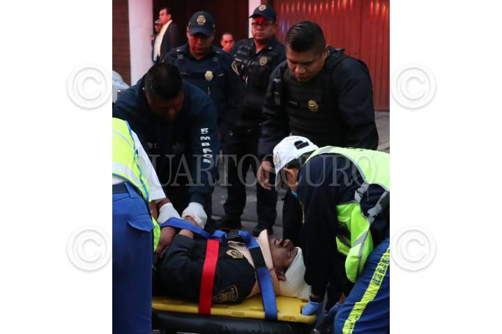 CIUDAD DE MÉXICO, 18SEPTIEMBRE2017.- Un elemento de la Secretaria de Seguridad Pública sufrió graves lesiones en la cabeza, después de haber caído desde una camioneta al dar vuelta sobre avenida Hidalgo y Rosales. El elemento fue trasladado a un hospital de urgencias. FOTO: ARMANDO MONROY /CUARTOSCURO.COM