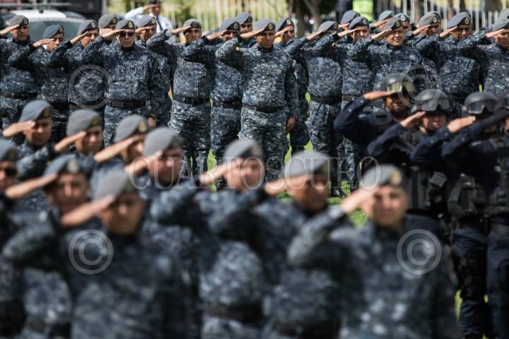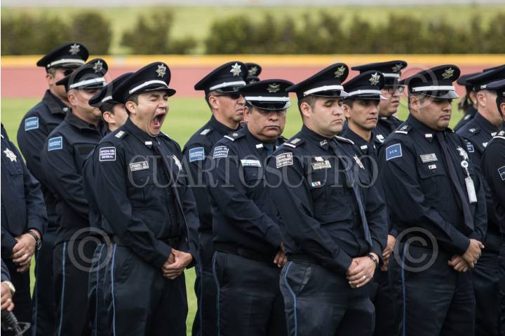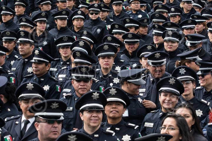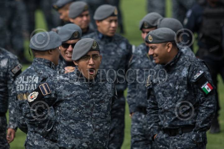 CIUDAD DE MÉXICO, 28NOVIEMBRE2018.- Elementos de la Policía Federal en descanso previo al inicio de la ceremonia de "Reconocimiento y fortalecimiento de capacidades policiales" que se llevó acabo en el Centro de Mando de la Policía Federal. FOTO: MISAEL VALTIERRA / CUARTOSCURO.COM