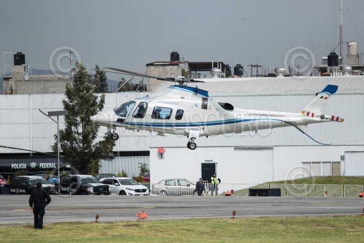 CIUDAD DE MÉXICO, 28NOVIEMBRE2018.- Helicóptero en el que se transporta el Secretario de Gobernación, Alfonso Navarrete Prida, arriba al hangar del Centro de Mando de la Policía Federal. FOTO: MISAEL VALTIERRA / CUARTOSCURO.COM