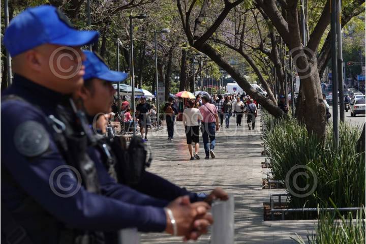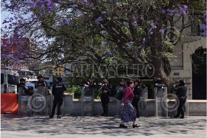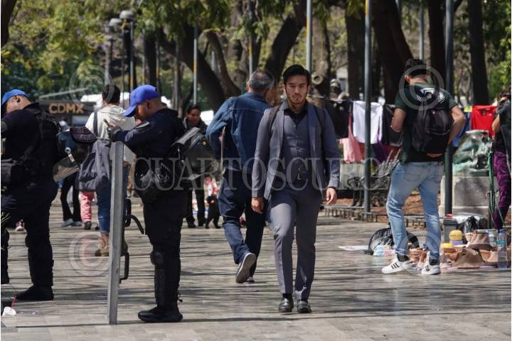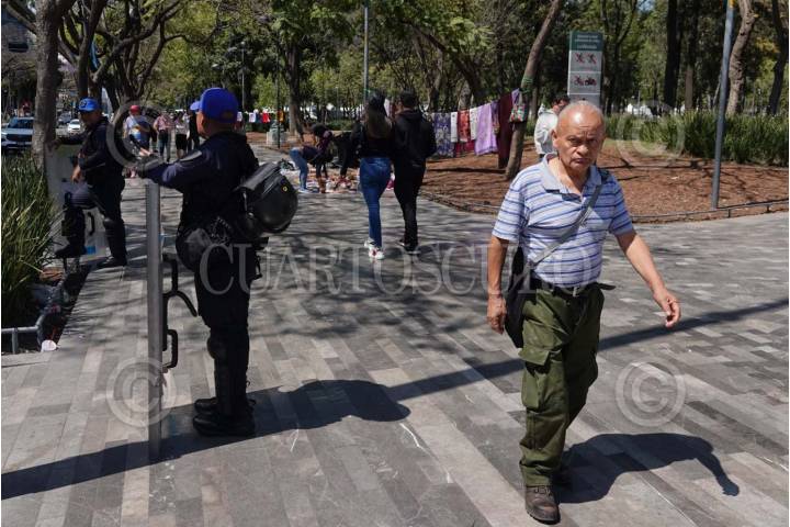 CIUDAD DE MÉXICO, 24FEBRERO2025.- Elementos de la Secretaria de Seguridad Ciudadana mantienen la vigilancia en pocos puntos de la Alameda Central luego de que ayer, un grupo de policías agredió a Donají, una comerciante trans en una de las jardineras de este lugar. Diversos colectivos se han manifestado para exigir justicia por Donají como un intento de transfeminicidio y los Derechos Humanos de las personas trans. FOTO: GRACIELA LÓPEZ/CUARTOSCURO.COM