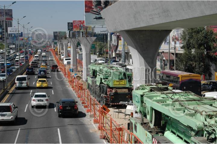 NAUCALPAN, EDO. DE MÉXICO, 03MARZO2009.- Al menos 250 toneladas es el peso de la primera trabe que se colocó este martes en las inmediaciones de lo que fue el Toreo de Cuatro Caminos, y será el Viaducto Elevado. Esta es la primera pieza de las 130 proyectadas para los 22 kilómetros de largo de este segundo piso de Periférico Norte y que correrá en un solo sentido a partir del municipio de Naucalpan hacia los límites de Cuautitlán, Izcalli y Tepotzotlán, para comunicarse con la carretera México-Querétaro. FOTO: MARIO NULO/CUARTOSCURO.COM