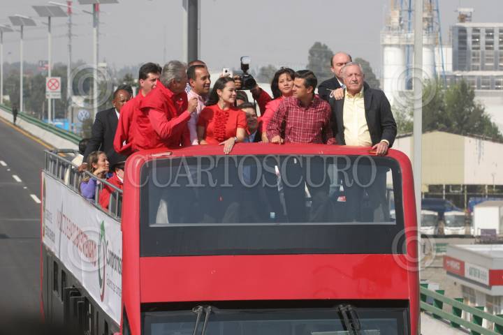 CUAUTITLAN IZCALLI, ESTADO DE MÉXICO, 24NOVIEMBRE2010.- Gerardo Ruíz Esparza, secretario de Comunicaciones del Estado de México, Alejandra del Moral Vela, presidenta municipal de Cuautitlan Izcalli, Enrique Peña Nieto, gobernador del Estado de México y José Andrés Oteyza Fernández, director Obrascon Huarte Lain (OHL), durante un recorrido durante la inauguracion del viaducto elevado bicentenario en el tramo Lago de Guadalupe-Tepalcapa. FOTO: SAÚL LÓPEZ/CUARTOSCURO.COM