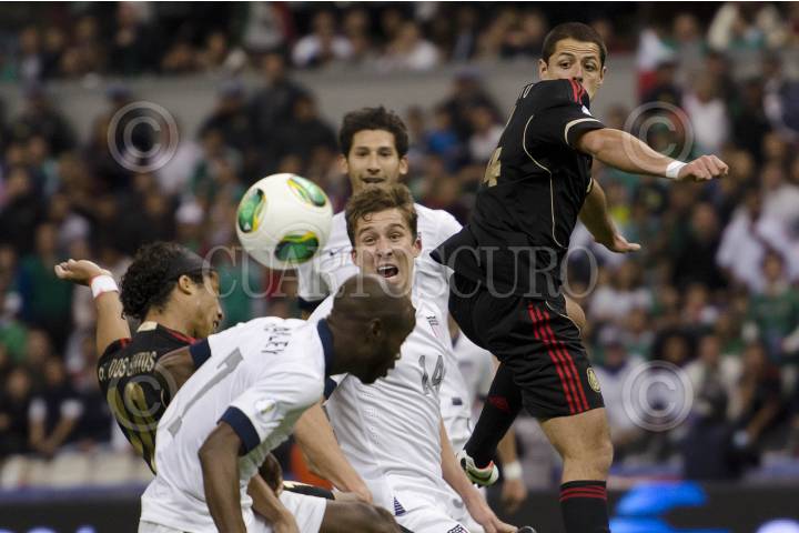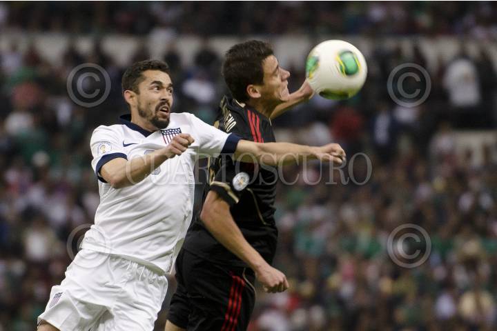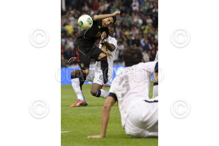 MÉXICO, D.F., 26MARZO2013.- Giovani Dos Santos (méxico), remata de cabeza durante el partido correspondiente a la Hexagonal Final de la eliminatoria a la Copa Mundial Fifa Brasil 2014 entre México vs Estados Unidos y llevado acabo en el estadio Azteca. FOTO: MISAEL VALTIERRA / CUARTOSCURO.COM