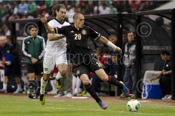 MÉXICO, D.F., 26MARZO2013.- Andrés Guardado, durante el partido correspondiente a la Hexagonal Final de la eliminatoria a la Copa Mundial Fifa Brasil 2014 entre México vs Estados Unidos y llevado acabo en el estadio Azteca. FOTO: MISAEL VALTIERRA / CUARTOSCURO.COM