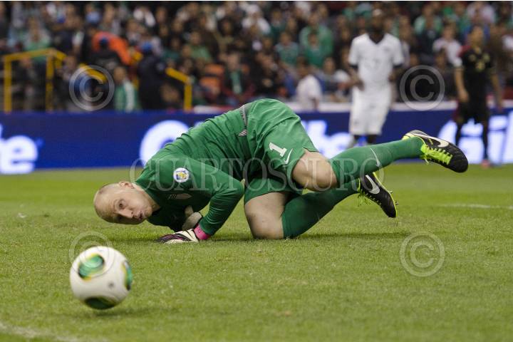 MÉXICO, D.F., 26MARZO2013.- Bradley Guzan (EUA), observa la pelota, durante el partido correspondiente a la Hexagonal Final de la eliminatoria a la Copa Mundial Fifa Brasil 2014 entre México vs Estados Unidos y llevado acabo en el estadio Azteca. FOTO: MISAEL VALTIERRA / CUARTOSCURO.COM