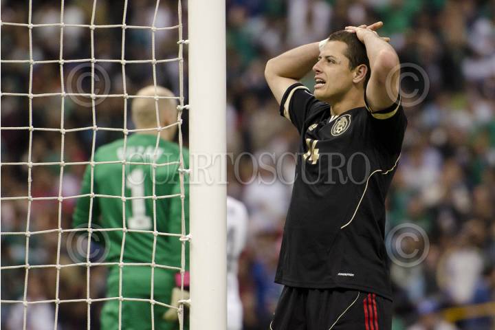 MÉXICO, D.F., 26MARZO2013.- Javier "Chicharito" Hernández, se lamenta una jugada, durante el partido correspondiente a la Hexagonal Final de la eliminatoria a la Copa Mundial Fifa Brasil 2014 entre México vs Estados Unidos y llevado acabo en el estadio Azteca. FOTO: MISAEL VALTIERRA / CUARTOSCURO.COM