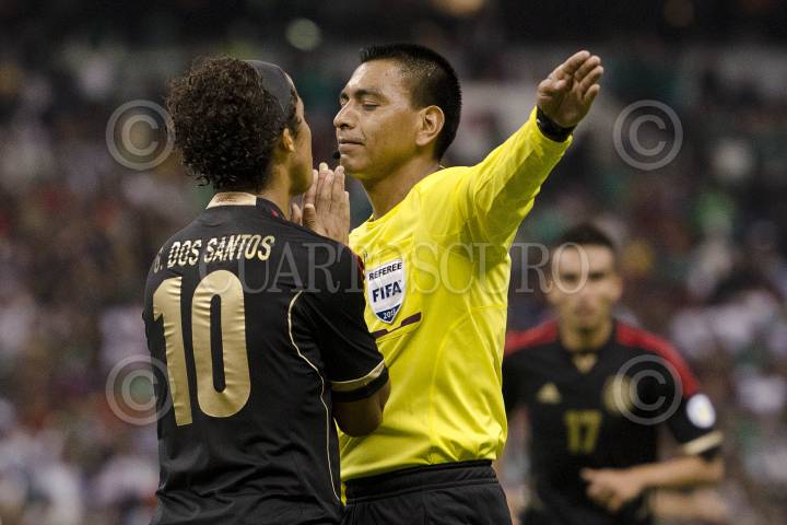MÉXICO, D.F., 26MARZO2013.- Geovani Dos Santos, reclama al arbitro del encuentro una falta, durante el partido correspondiente a la Hexagonal Final de la eliminatoria a la Copa Mundial Fifa Brasil 2014 entre México vs Estados Unidos y llevado acabo en el estadio Azteca. FOTO: MISAEL VALTIERRA / CUARTOSCURO.COM