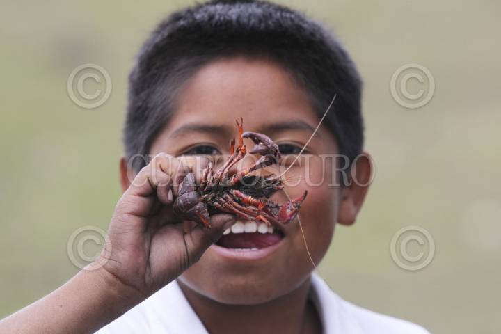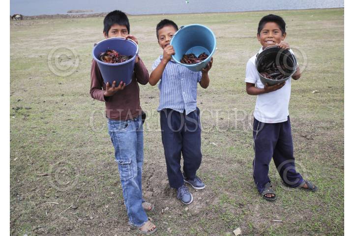 VENUSTIANO CARRANZA, CHIAPAS13FEB2014.- Niños y adultos participan en la pesca de langostinos en la laguna de Aguacatenco, municipio cercano a San Cristóbal de las CasaS, para su respectiva venta. La pesca es una de las principales actividades económicas de la región. FOTO: ELIZABETH RUIZ /CUARTOSCURO.COM