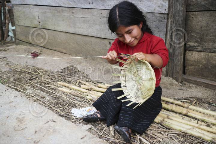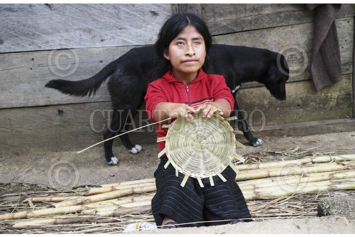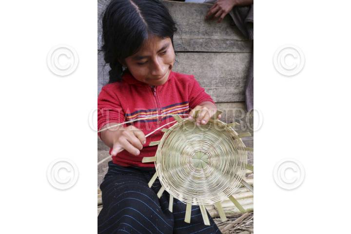 SAN JUAN CHAMULA, CHIAPAS, 13MAYO2014.- Pascualita tiene 15 años y se dedica a la artesanía de cestos de carrizo. Al pie de la carretera, en donde se ubica su casa, vende sus cestos para ganarse la vida. FOTO: ELIZABETH RUIZ /CUARTOSCURO.COM