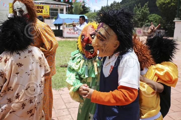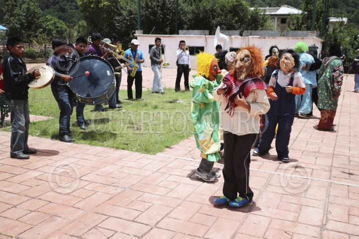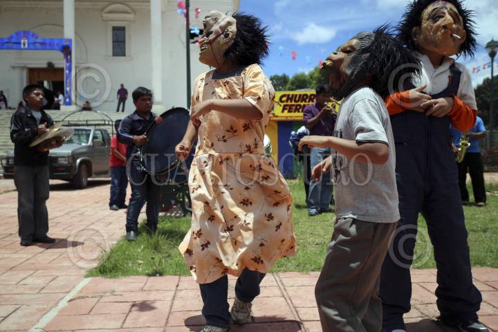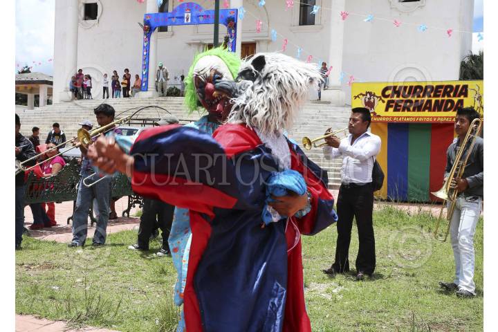 SAN CRISTÓBAL DE LAS CASAS, 23MAYO2014.- En San Cristóbal cada barrio tiene su fiesta, se festeja en honor al santo patrón del barrio y los festejos suelen durar de dos a tres días. Desfiles, disfraces y carros alegóricos, además del paseo tradicional de la figura del santo en la calle, son algunos rasgos del color de aquellas fiestas. Los barrios de Cuxtitalli “Dulce Nombre de Jesús”, La Garita “Santa Cruz”, María Auxiliadora, San Antonio, San Cristobalito son sólo algunos de los que festejan con el repique de las campanas, cuetes y una misa. En la imagen, la fiesta del barrio de María Auxiliadora. FOTO: ELIZABETH RUIZ /CUARTOSCURO.COM