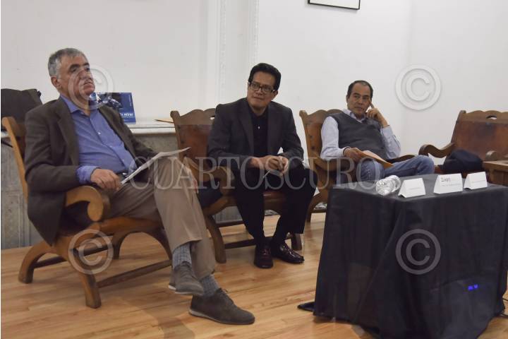 CIUDAD DE MÉXICO, 08NOVIEMBRE2018.- El fotoperiodista Eloy Valtierra, en compañía de José María Espinasa, y Juan Antonio Valtierra, presentó su libro El sentido de mirar: los hermanos Valtierra en el fotoperiodismo mexicano, llevada a cabo en la Casa Refugio Citlaltépetl. FOTO: MARIO JASSO /CUARTOSCURO.COM