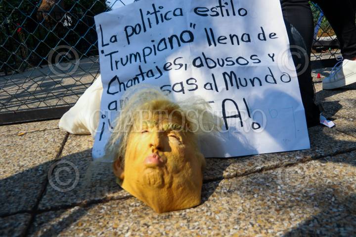 CIUDAD DE MÉXICO 14JUNIO2025.- Integrantes de diversos colectivos se maifestaron encontra de las políticas migratorias aplicadas por el presidente Donald Trump,esto frente a la embajada de Estados Unidos. FOTO:ROGELIO MORALES /CUARTOSCURO.COM