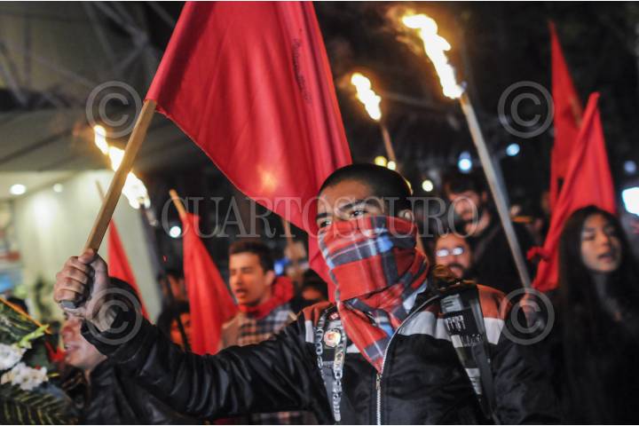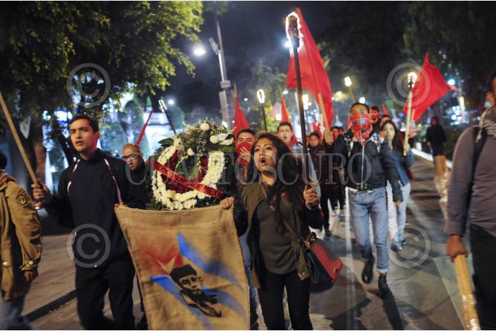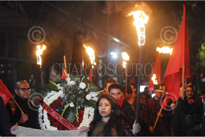 CIUDAD DE MÉXICO, 26NOVIEMBRE2016.- Jóvenes del Partido Comunista de México realizaron una marcha con antorchas del metro Polanco hacia la embajada de Cuba como un homenaje al comandante Fidel Castro, quien falleció la noche de ayer. FOTO: DIEGO SIMON SANCHEZ /CUARTOSCURO.COM