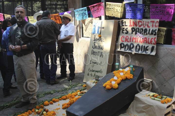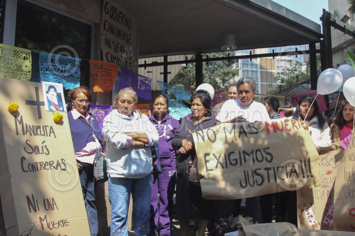 MÉXICO, D.F., 31OCTUBRE2012.- Integrantes del Barzón encabezados por su titular Alfonso Ramírez Cuéllar, se manifestaron frente a las instalaciones de la embajada de Canada, para exigir el esclarecimiento de la muerte de sus compañeros Ismael Solorio Urrutia y Manuelita Solís Contreras defensores de derechos humanos sociales y ambientales del campo en Chihuahua. FOTO: SAÚL LÓPEZ /CUARTOSCURO.COM