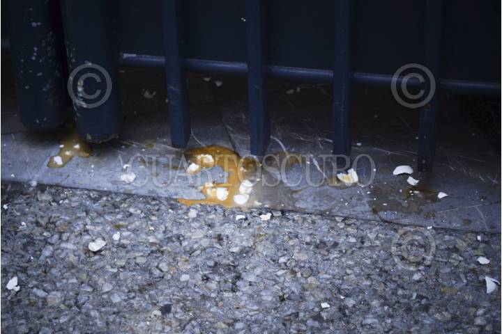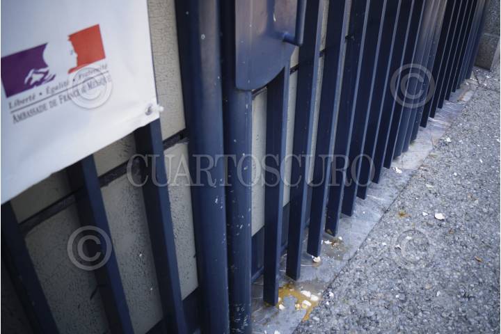 MÉXICO, D.F., 03JUNIO2013.- Maestros de la Sección 22 de Oaxaca lanzaron huevos a la fachada de la embajada de Francia para exigir que empresarios extranjeros no intervengan en las decisiones en la educación de México. FOTO: SAÚL LÓPEZ /CUARTOSCURO.COM