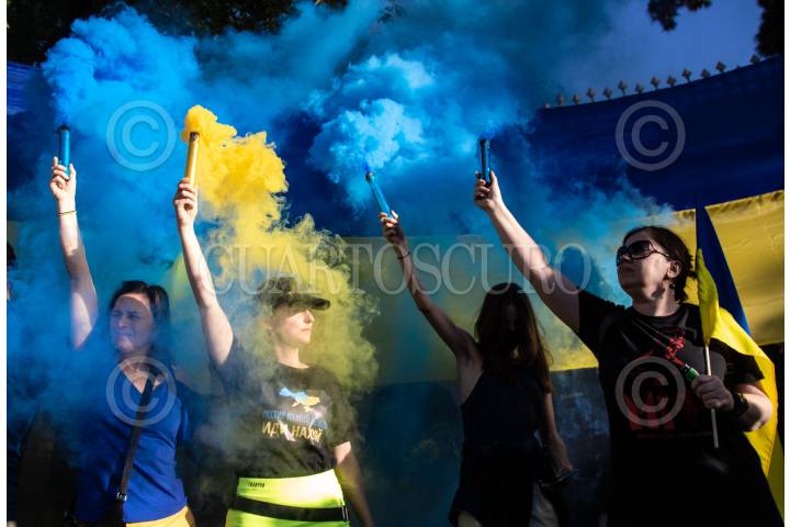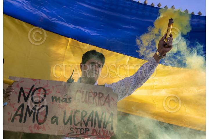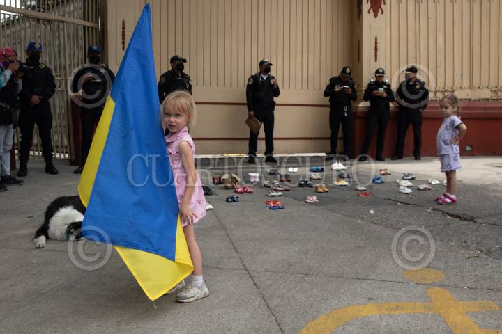 Personas con nacionalidad ucraniana se manifestaron frente la embajada de Rusia para pedir a esta que se nombrara en contra de las acciones de Vladimir Putin. También para mostrar apoyo a sus familiares que se encuentran en Ucrania.