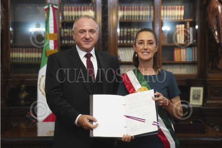 CIUDAD DE MÉXICO, 19MAYO2025.- Milan Cigán presentó sus cartas credenciales como nuevo embajador de República Eslovaca a la Presidenta de México, Claudia Sheinbaum, en una reunión privada en Palacio Nacional. FOTO: PRESIDENCIA/CUARTOSCURO.COM