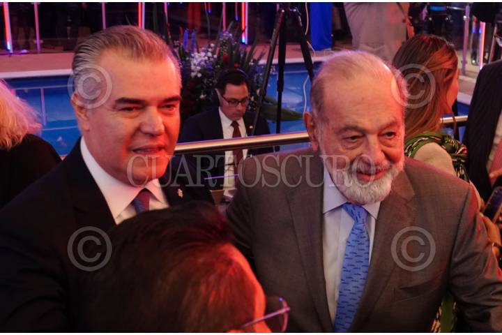 CIUDAD DE MÉXICO, 26JUNIO2025.- Francisco Cervantes, presidente del Consejo Coordinador Empresarial (CCE), y el empresario Carlos Slim durante la ceremonia con motivo de 249 Aniversario de la Independencia de los Estados Unidos, próxima a celebrarse el 4 de julio, en la residencia oficial de la embajada. FOTO: GALO CAÑAS/CUARTOSCURO.COM