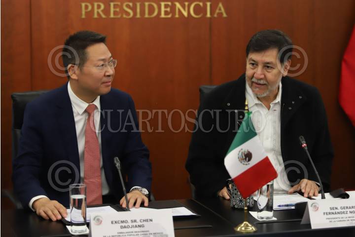 CIUDAD DE MÉXICO, 07JULIO2025.- El nuevo embajador de China en México, Chen Daojiang, visitó el Senado de la República y se reunió con el presidente de la Mesa Directiva, Gerardo Fernández Noroña. FOTO: DANIEL AUGUSTO/ CUARTOSCURO.COM