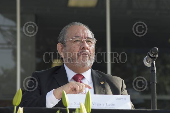 CIUDAD DE MÉXICO, 30MAYO2016.- Salvador Vega y León, rector de la Universidad Autónoma de México, junto con Dragoberto Rodríguez Barrera, embajador extraordinario y plenipotenciario de Cuba, realizaron el corte e inauguración del Librofest Metropolitano 2016 en las instalaciones de la UAM Azcapotzalco. Este año el Estado de México es el invitado especial al festival literario debido a la gran cantidad de alumnos que viven en dicha entidad, durante la conferencia previa al corte de listón estudiantes del plantel se manifestaron con pancartas en contra de la política del gobernador Erúviel Ávila y la llamada Ley Atenco. En la imagen Salvador Vega y León. FOTO: GALO CAÑAS /CUARTOSCURO.COM