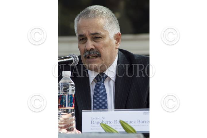 CIUDAD DE MÉXICO, 30MAYO2016.- En la imagen Dragoberto Rodríguez Barrera. Salvador Vega y León, rector de la Universidad Autónoma de México, junto con Dragoberto Rodríguez Barrera, embajador extraordinario y plenipotenciario de Cuba, realizaron el corte e inauguración del Librofest Metropolitano 2016 en las instalaciones de la UAM Azcapotzalco. Este año el Estado de México es el invitado especial al festival literario debido a la gran cantidad de alumnos que viven en dicha entidad, durante la conferencia previa al corte de listón estudiantes del plantel se manifestaron con pancartas en contra de la política del gobernador Erúviel Ávila y la llamada Ley Atenco. FOTO: GALO CAÑAS /CUARTOSCURO.COM