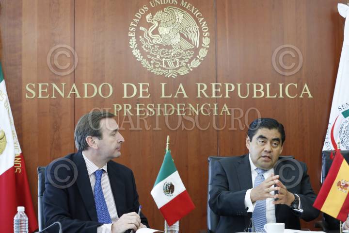 MÉXICO, D.F., 15JUNIO2015.- Miguel Barbosa Huerta, presidente del Senado de la República, se reunió con el embajador de España en México, Luis Fernández Cid de las Alas Pumariño, para revisar los detalles técnicos-logísticos de la sesión solemne que la Comisión Permanente del Congreso de la Unión realizará el próximo 30 de junio para recibir a los Reyes de España Felipe VI y Letizia. FOTO: CUARTOSCURO.COM