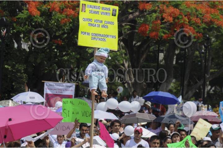 CHILPANCINGO, GUERRERO, 15JUNIO2014.- Decenas de personas se dieron cita en el parque Margarita Maza de Juárez, para iniciar una mega marcha contra el aborto, concluyendo en el zócalo de esta ciudad capital. Con pancartas pedían a los legisladores que no voten a favor de la despenalización del aborto, iniciativa del ley que envió el gobernador Ángel Aguirre Rivero al congreso local para su aprobación y que hasta hoy ha causado polémica. FOTO: JOSE I. HERNANDEZ /CUARTOSCURO.COM
