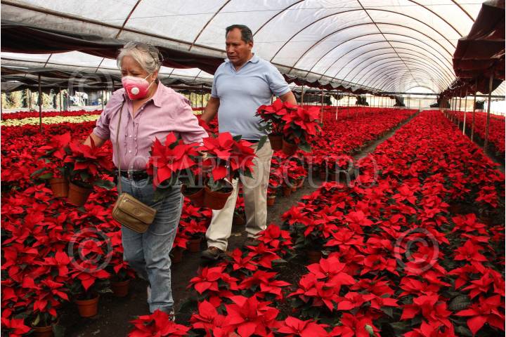 Pareja realiza compra de flor de nochebuena, directamente en invernadero se Xochimilco. FOTO: ROGELIO MORALES /CUARTOSCURO.COM