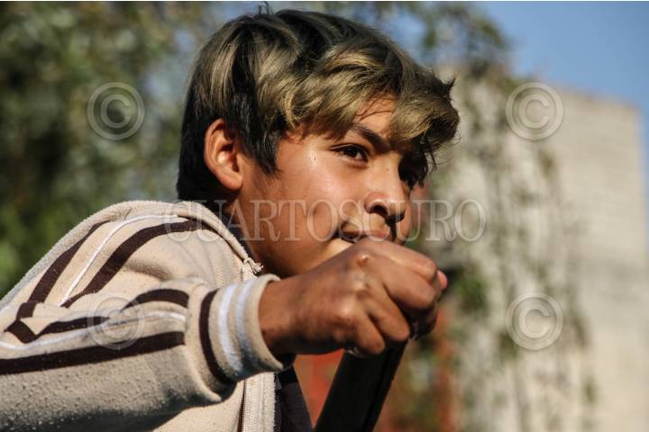 Menor muestra rastros de sudor mientras empuja una trajinera en el canal de Xochimilco. FOTO: ROGELIO MORALES /CUARTOSCURO.COM