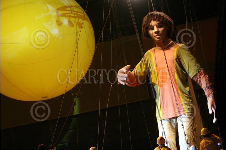 MONTERREY, NUEVO LEON 09DICIEMBRE2007.- Durante las fiestas de clausura del forum universal de las culturas Monterrey 2007, se llevo a cabol el espectaculo emblematico denominado "La Fragua del Mundo", con el cual se dio la despedida a la marioneta gigante "Luca", en el horno 3 del parque fundidora. FOTO: PEDRO KRISTIAN LOPEZ/CUARTOSCURO.COM