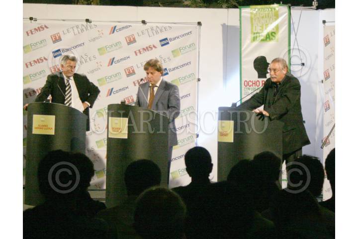 MONTERREY, NUEVO LEON 17OCTUBRE2007.- Álvaro Vargas Llosa, Ricardo Cayuela e ignacio Ramonet en un debate emblematico en el museo de historia mexicana, con el tema: "¿Es bueno el capitalismo para los pobres?", como parte de los dialogos dentro del forum universal de las culturas. FOTO: PEDRO KRISTIAN LOPEZ/CUARTOSCURO.COM
