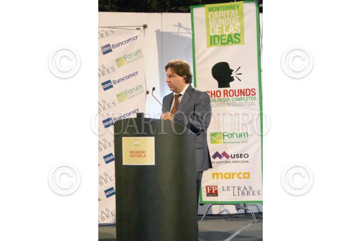 MONTERREY, NUEVO LEON 17OCTUBRE2007.- Ricardo Cayuela en el debate emblemático en el museo de historia mexicana, con el tema: "¿Es bueno el capitalismo para los pobres?", como parte de los dialogos dentro del forum universal de las culturas. el Historiador Enrique Krauze y el ecritor Mario Vargas Llosa estuvieron presentes. FOTO: PEDRO KRISTIAN LOPEZ/CUARTOSCURO.COM