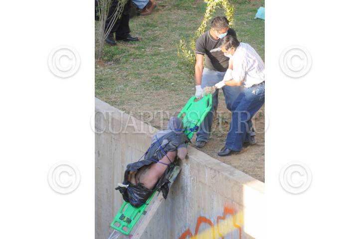 MEXICO, D.F. 18DICIEMBRE2008.- Encuentran en un canal de aguas negras a una persona embolsada y amarrada cerca de las calles de Jerónimo de las Casas esquina Fany Sheisler, en la colonia Arboledas de Cuautepec Barrio Alto en la delegación Gustavo A. Madero. FOTO: SAUL LOPEZ/CUARTOSCURO.COM