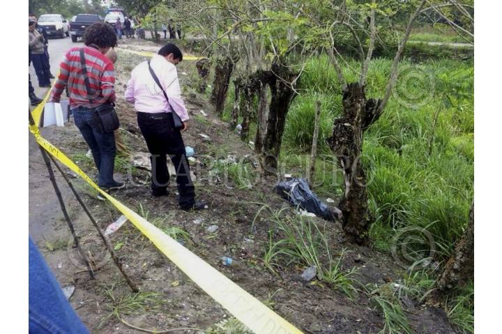 CÁRDENAS, TABASCO, 30ENERO2014.- Embolsado fue encontrado el cuerpo de una mujer sobre la carretera Cárdenas-Villahermosa, a la altura de un banco de arena en el tramo conocido como Samaria. De manera extraoficial; ya que se niegan las autoridades de la Procuraduría General de Justicia a proporcionar información, y se dice se trata de la joven mujer Geraldineth Pérez Benítez, quien llevaba cinco días desaparecida. FOTO: MARCO POLO GUZMÁN HERNÁNDEZ /CUARTOSCURO.COM