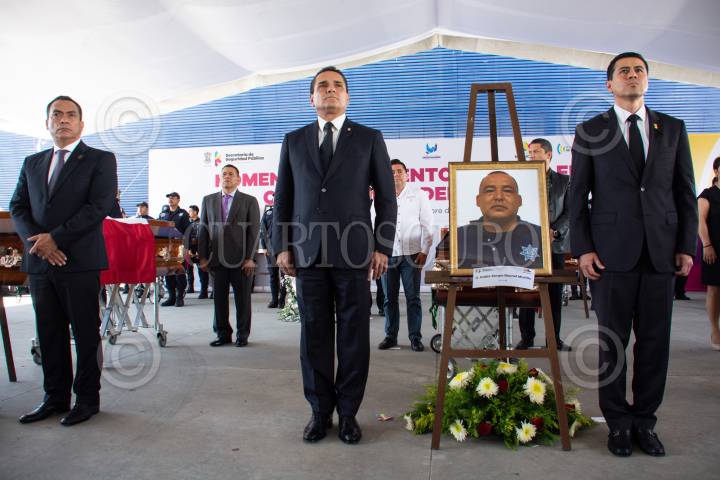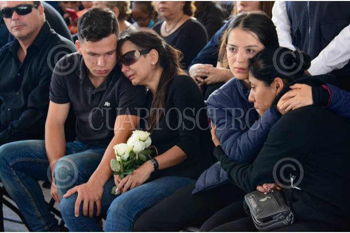 MORELIA, MICHOACÁN, 06FEBRERRO2019. Familiares, amigos, compañeros de trabajo y autoridades de la PGJE dieron el último adiós a Carlos Augusto Hernández y Luis Enrique Hinojosa, agentes de la Policía Ministerial, adscritos al área de homicidios quienes murieron al ser emboscados en el municipio de Ario de Rosales el pasado día lunes. El evento se llevó a cabo en el área de hangares de la Procuraduría General de Justicia del Estado (PGJE), acto solemne en el que se dieron cita familiares, amigos, compañeros de trabajo y autoridades de la dependencia. FOTO: JUAN JOSÉ ESTRADA SERAFÍN /CUARTOSCURO.COM