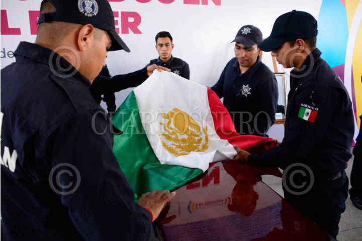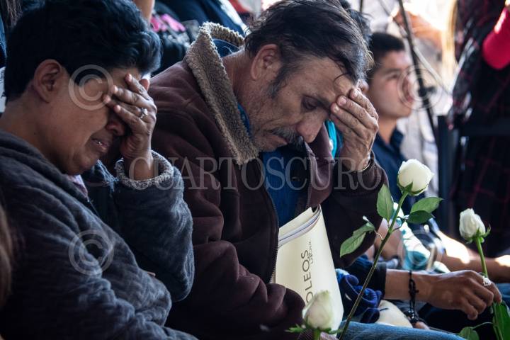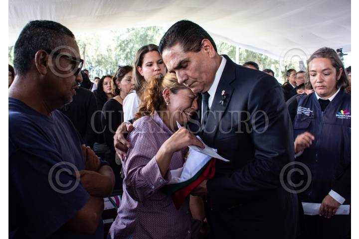 MORELIA, MICHOACÁN, 15OCTUBRE2019.- Familiares de seis de los 13 policías estatales asesinados en una emboscada el día de ayer en el paraje de El Aguaje, en el municipio de Aguililla, recibieron un homenaje por parte del gobierno local encabezado por Silvano Aureoles Conejo. Las familias de los otros seis elementos rechazaron el homenaje argumentando que el gobierno solo quiere la foto, pero que en realidad no les importa su muerte. La ceremonia se realizó en las instalaciones de la Secretaría de Seguridad de Michoacán. FOTO: CUARTOSCURO.COM