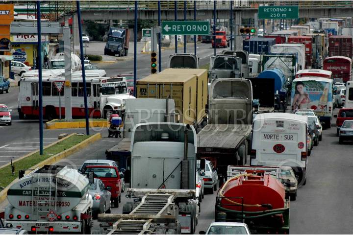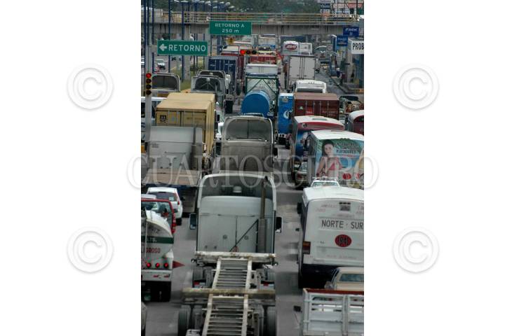 VERACRUZ, VER. 24OCTUBRE2007.- Intenso tráfico sobre la Avenida Rafael Cuervo que conduce al principal acceso del recinto portuario. Esto debido a que por las afectaciones del día de ayer se suspendieran todas las actividades, reiniciándose el día de hoy. En consecuencia esta mañana se acumuló el tráfico de carga, rebasando la capacidad de recepción dentro de la zona portuaria. FOTO: JOSE CANDELARIO/CUARTOSCURO.COM