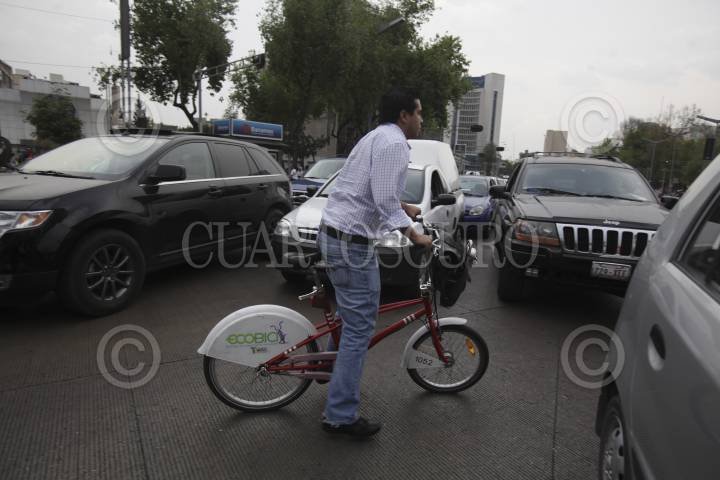 MÉXICO, D.F., 16MARZO2012.- Ante el tráfico generado por las diversas protestas y manifestaciones en diferentes vías de la Ciudad, las opciones de transporte se redujeron a Ecobici o bicicletas particulares. FOTO:JUAN PABLO ZAMORA /CUARTOSCURO.COM