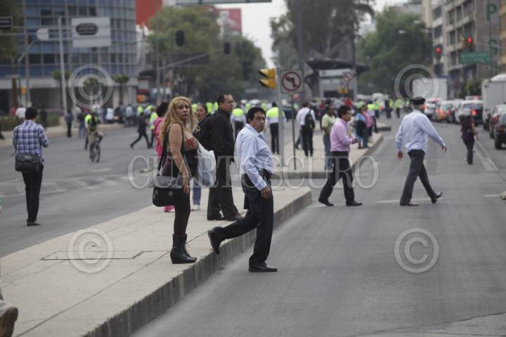 MÉXICO, D.F., 16MARZO2012.- Transeuntes y usuarios de Metrobús, tuvieron que caminar enmedio del tráfico, originado por marchas y manifestaciones de los Maestros de la CNTE, en diferentes vias de la Ciudad era lento el avance de los vehículos. FOTO:JUAN PABLO ZAMORA /CUARTOSCURO.COM