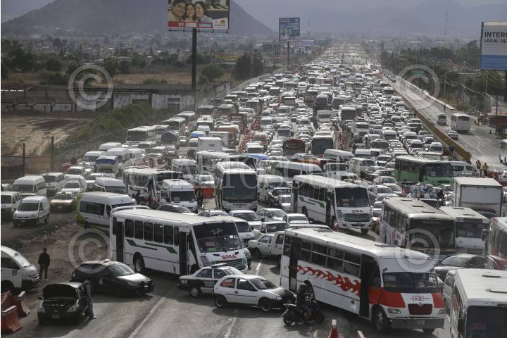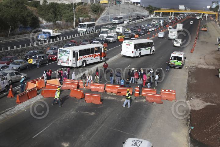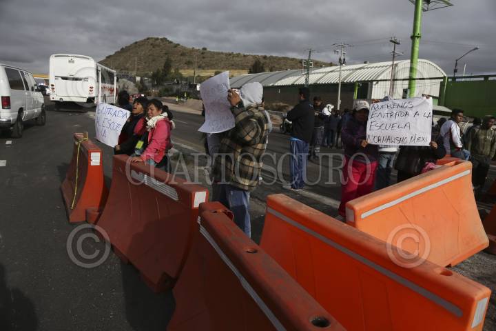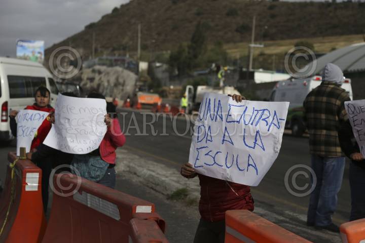 MÉXICO, D.F., 08ENERO2015.- Alrededor de 30 padres de familia bloquearon la autopista México-Puebla a la altura del kilómetro 21 donde exigieron a la constructora que lleva acabo la ampliación de la autopista una entrada a una escuela primaria ubicada al interior de un basurero. FOTO: SAÚL LÓPEZ /CUARTOSCURO.COM