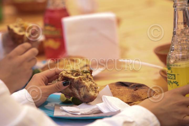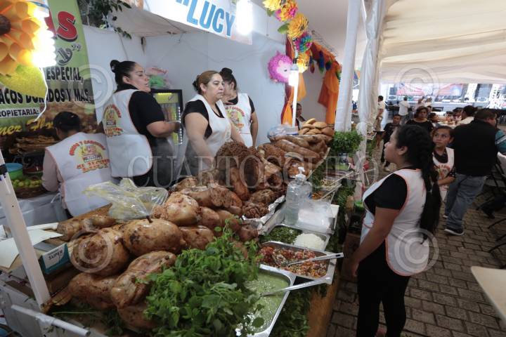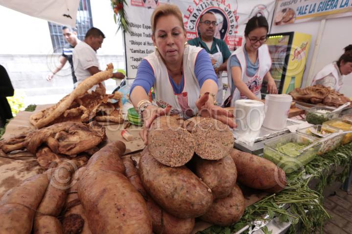 TENANCINGO, ESTADO DE MÉXICO, 02AGOSTO2019.- La explanada del Jardín Morelos en este municipio fue la sede para la 16 Feria del Obispo, embutido preparado con carne de cerdo y especies y algunas semillas, y es considerado el platillo típico de Tenancingo; 11 productores ofrecieron obispo tradicional y especial a los visitantes de esta feria que termina el 4 de agosto. FOTO: CRISANTA ESPINOSA AGUILAR /CUARTOSCURO.COM